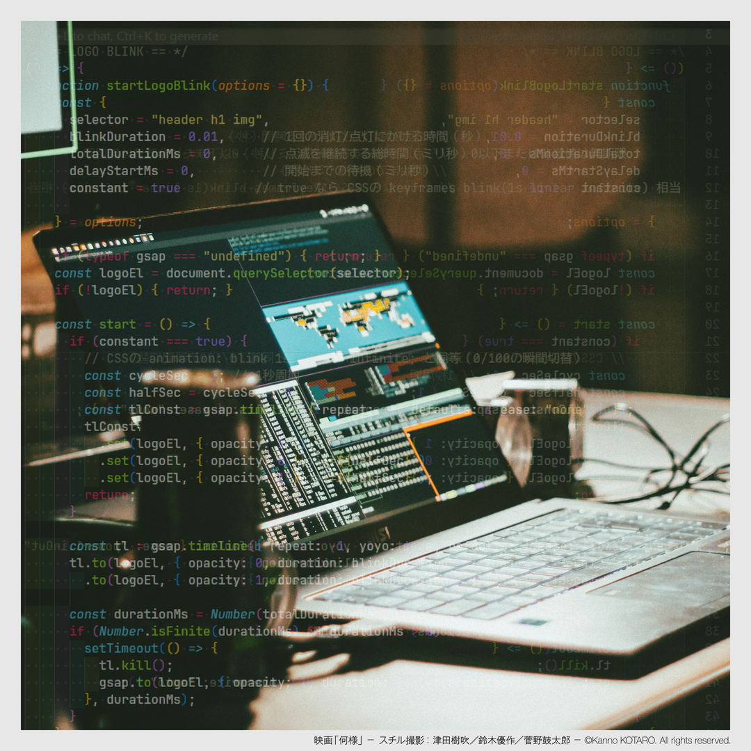 K-SYS における JavaScript は、装飾のための技術ではなく、物語・演技・時間を一つのルールで束ねるための制御言語として機能しています。